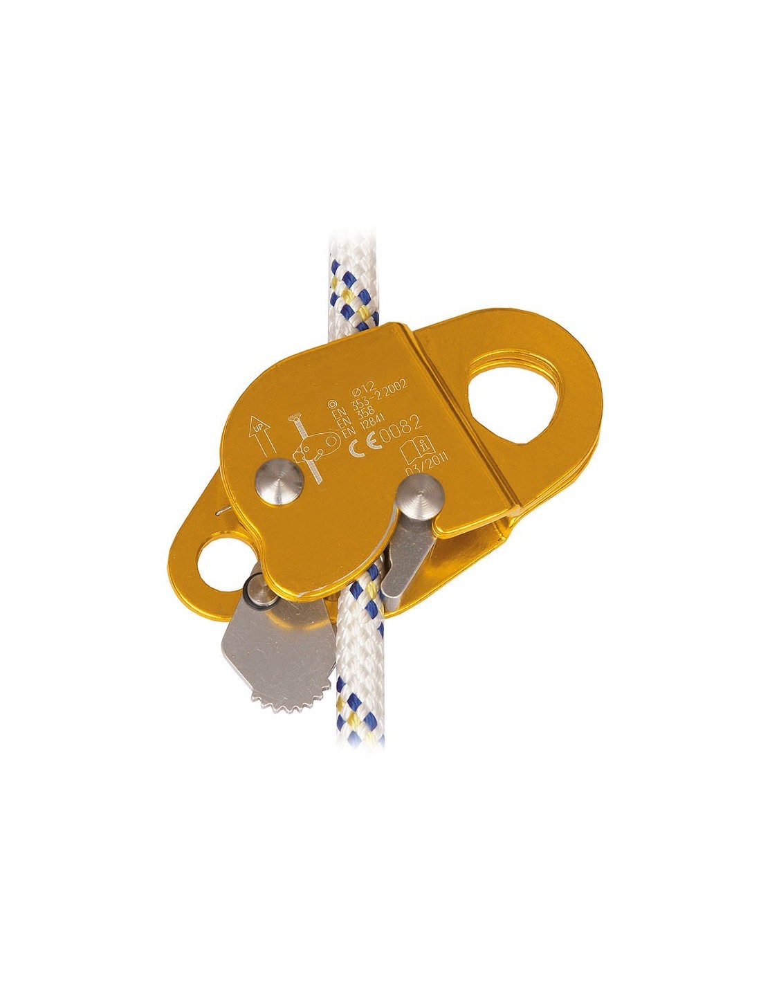 El dispositivo deberá ser conectado al arnés mediante mosquetón ovalado clase B certificado según el standard EN362, por ejemplo un 80112.