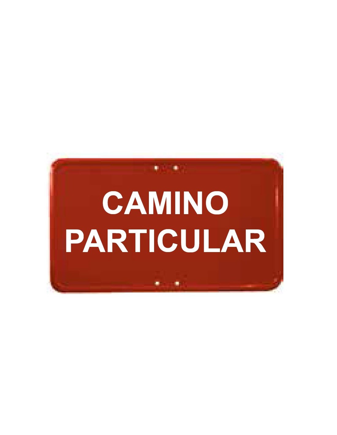 Señal roja: PROPIEDAD PRIVADA PROHIBIDO EL PASO, CAMINO PRIVADO PROHIBIDO EL PASO, PROPIEDAD PRIVADA, CAMINO PARTICULAR.